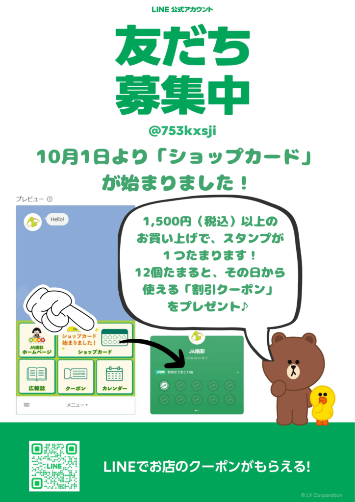 ぜひこの機会に、LINEショップカードをご利用いただきながら、直売所でのお買い物をお楽しみください。