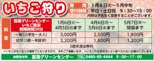 いちごの生育状況により定刻前終了、または開園出来ない場合もありますので、その際はご了承ください。