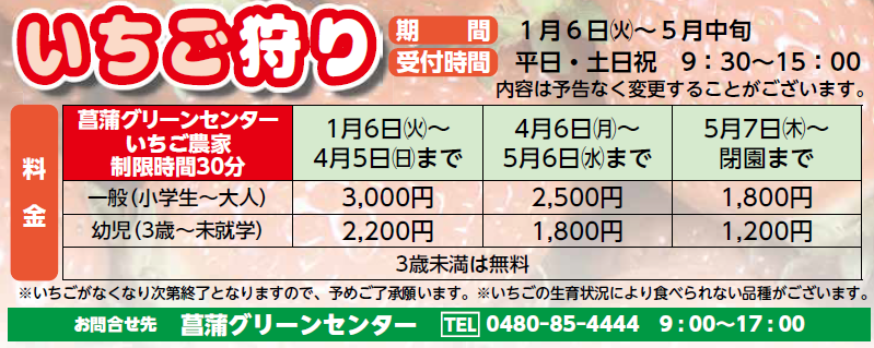 1/6(火)から“菖蒲グリーンセンターいちご狩り”がスタートします🍓✨