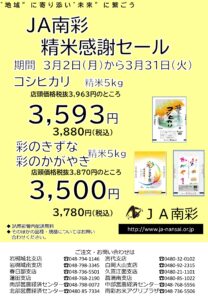 🌾感謝セール開催のお知らせ