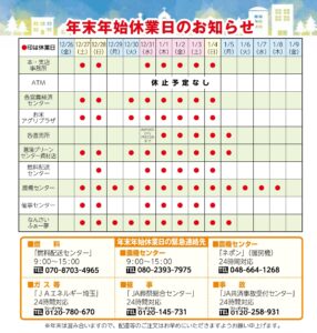 お知らせ重要NEWS年末年始休業日のお知らせ