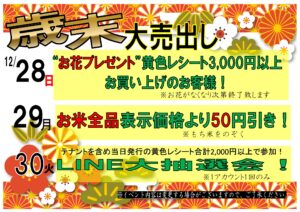 歳末大売り出しPOP 毎年恒例の歳末大売出し、今年も開催いたします! 28日(日)当日対象の黄色いレシート3,000…